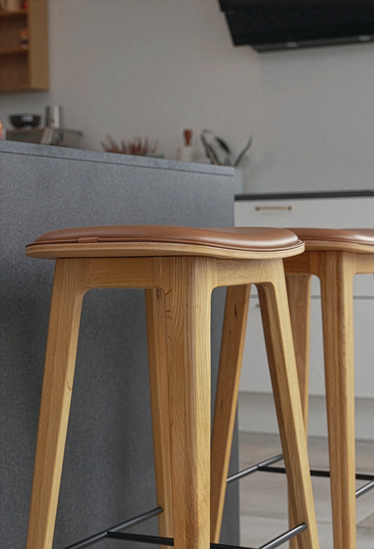 Vi anvender SPOOR Læder til alle vores læderprodukter, herunder spisebordsstole, sækkestole og barstole.