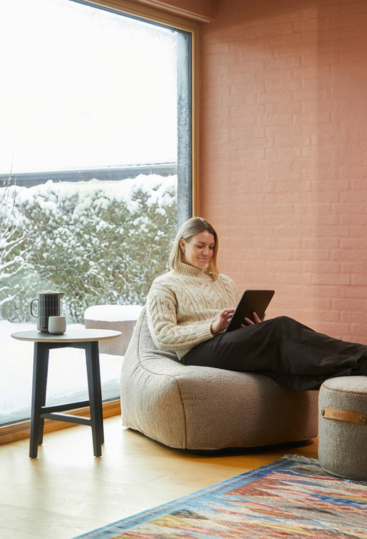 Dyk ned i en verden af æstetik, hvor vores skandinaviske rødder møder moderne design. Uanset om det er vores ikoniske loungestole, alsidige borde eller moderne lamper, så har Team SACKit formået at integrere dem i deres daglige liv.