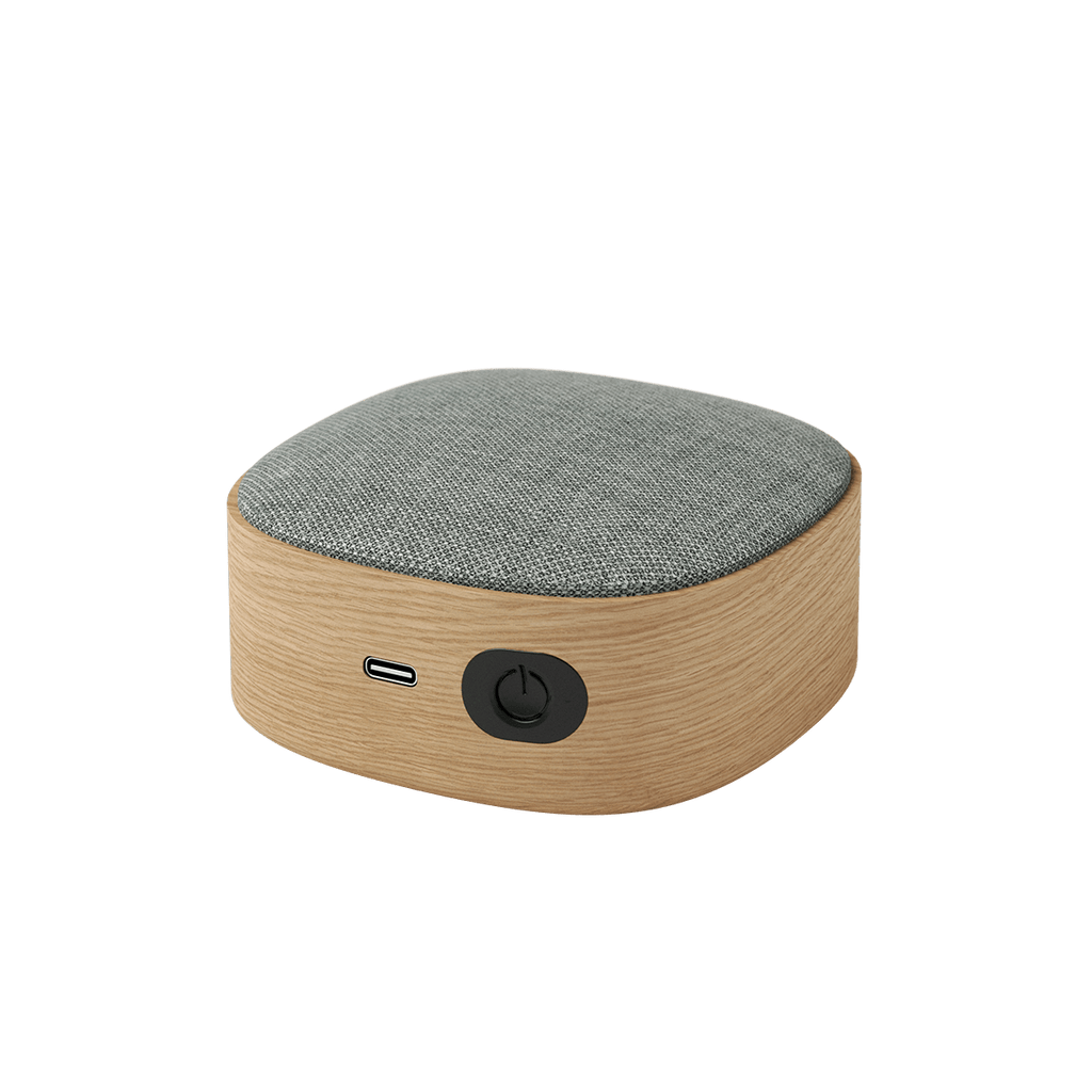 Go Wood er en lille, let transportabel højtaler forklædt som et æstetisk stykke interiør i din indretning. Med en elegant træramme i egetræ og smukt tekstil fra danske KVADRAT, adskiller Go Wood sig fra andre højtalere på markedet. Go Wood leverer exceptionel lyd for dens størrelse samt den ultimative frihed, hvor du er fri for ledninger til både opladning og afspilning.