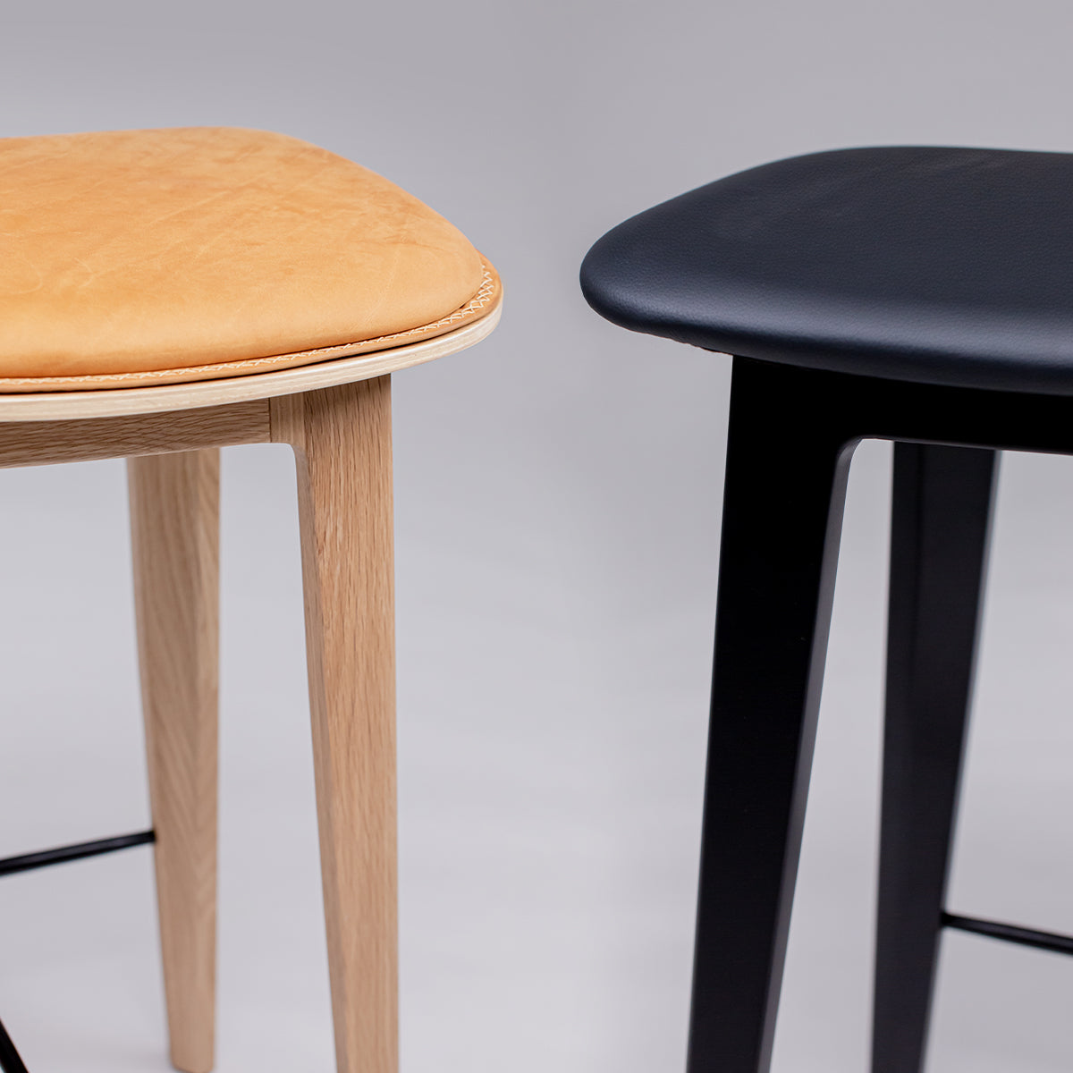 Stellet med sortlakeret egetræ giver både et klassisk og råt look til din indretning. Det sorte stel skaber en elegant, smagfuld barstol, der matcher ethvert hjem og enhver stil. Kombiner det sorte stel med en af de sorte lædertyper for et stilrent look, eller skab en iøjnefaldende kontrast med en af de brune lædertyper.