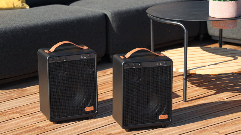- Tænd den ene højtaler og forbind denne til din enhed. Denne Boom 150 vil være venstre højtaler.