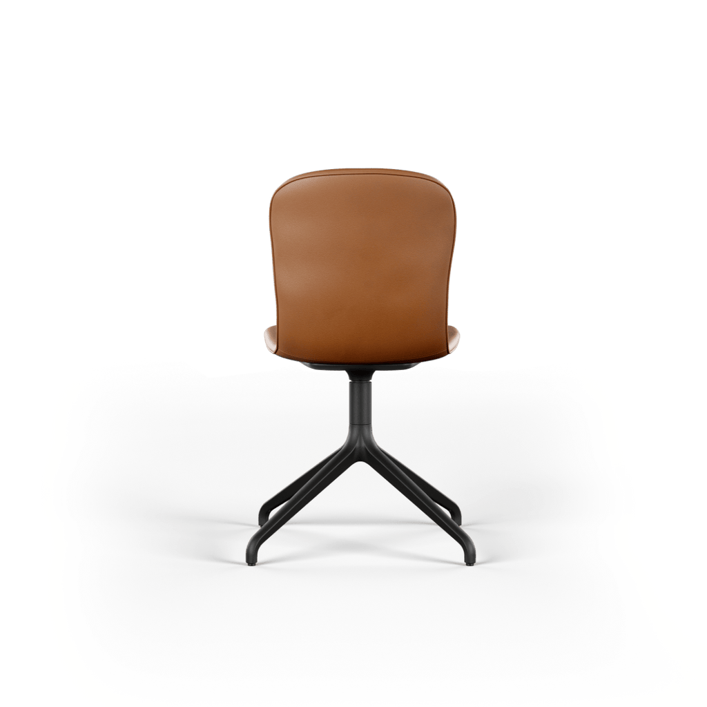 Chair no. One. er en spisebordsstol i et kompromisløst design fremstillet i nøje udvalgte materialer med fokus på bæredygtighed og kvalitet. Stellet er fremstillet i pulverlakeret genanvendeligt aluminium, hvortil sædet er produceret af genanvendt plast og polstret i læder fra SPOOR af højeste kvalitet.