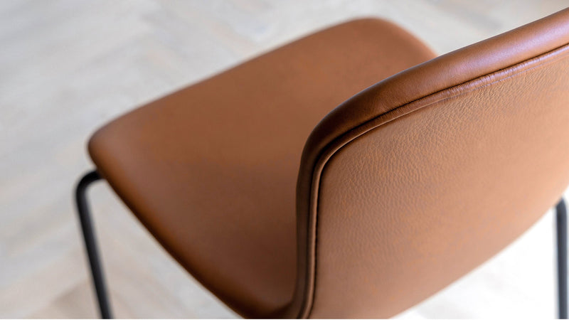 Chair no. One er polstret i nordisk sporbart læder fra SPOOR, som er kendt for sin høje kvalitet og sporbarhed, hvilket betyder at læderet kan spores tilbage til enkelt dyr, gård og landmand.