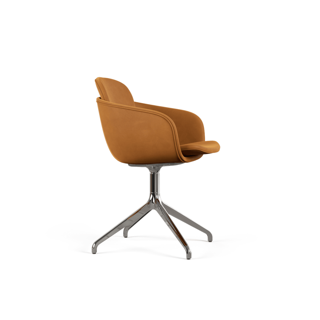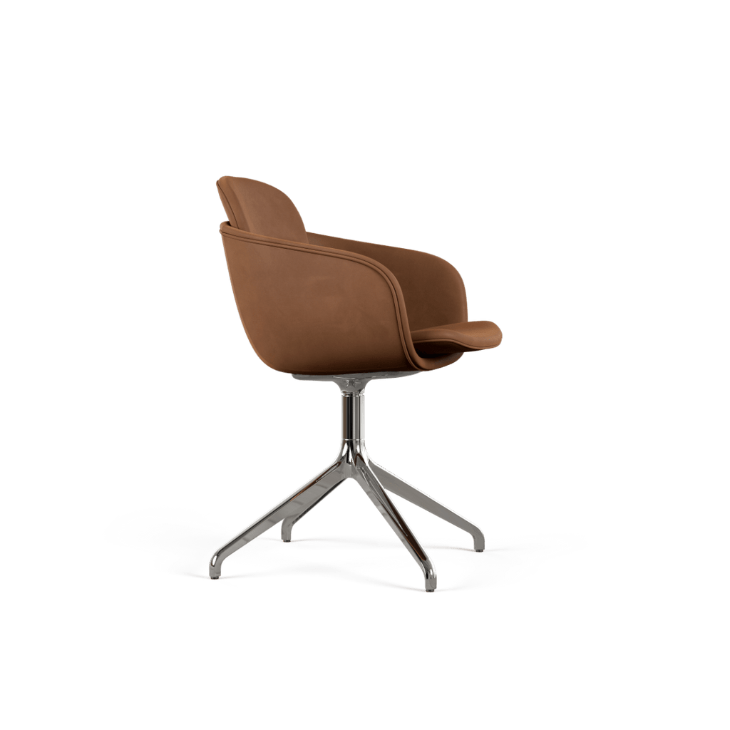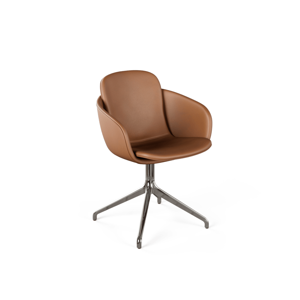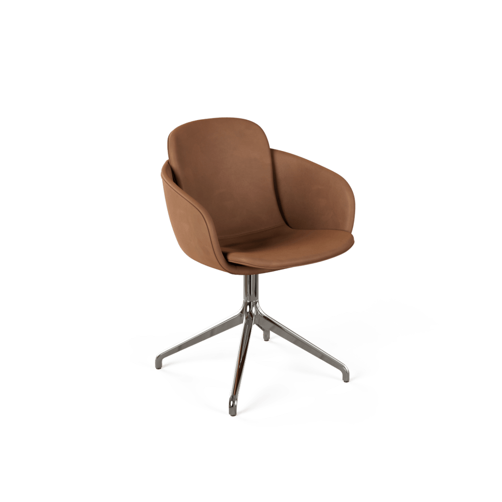Chair no. One. er en spisebordsstol i et kompromisløst design fremstillet i nøje udvalgte materialer med fokus på bæredygtighed og kvalitet. Stellet er fremstillet i poleret genanvendeligt aluminium, hvortil sædet er produceret af genanvendt plast og polstret i læder fra SPOOR af højeste kvalitet.