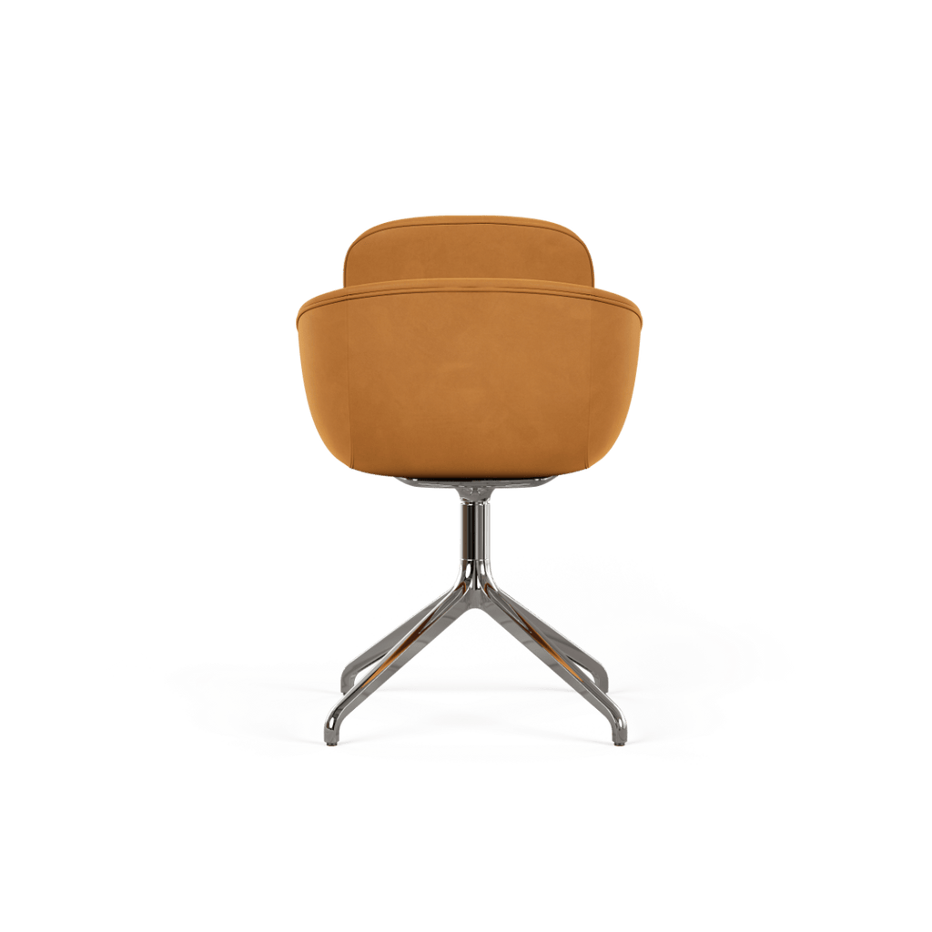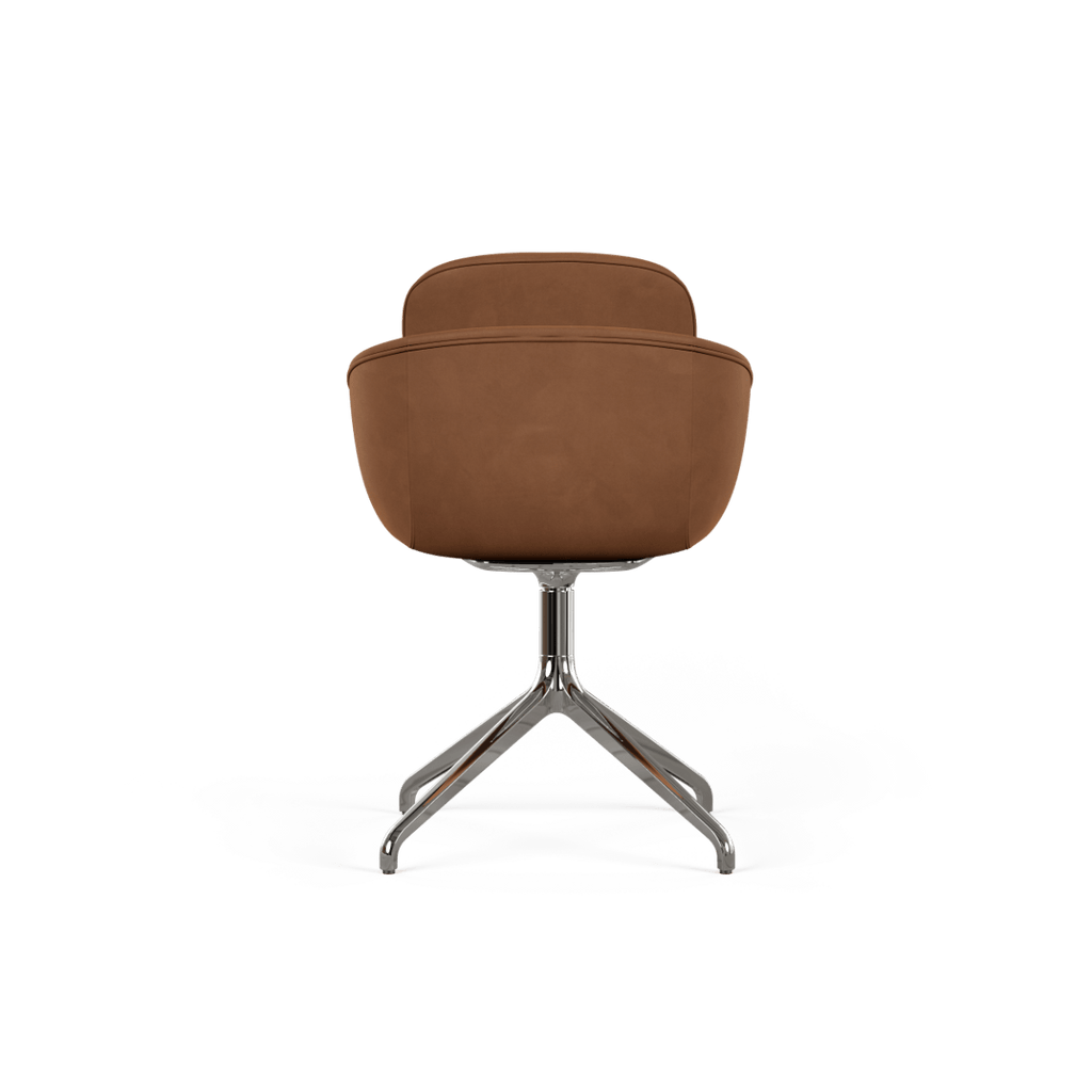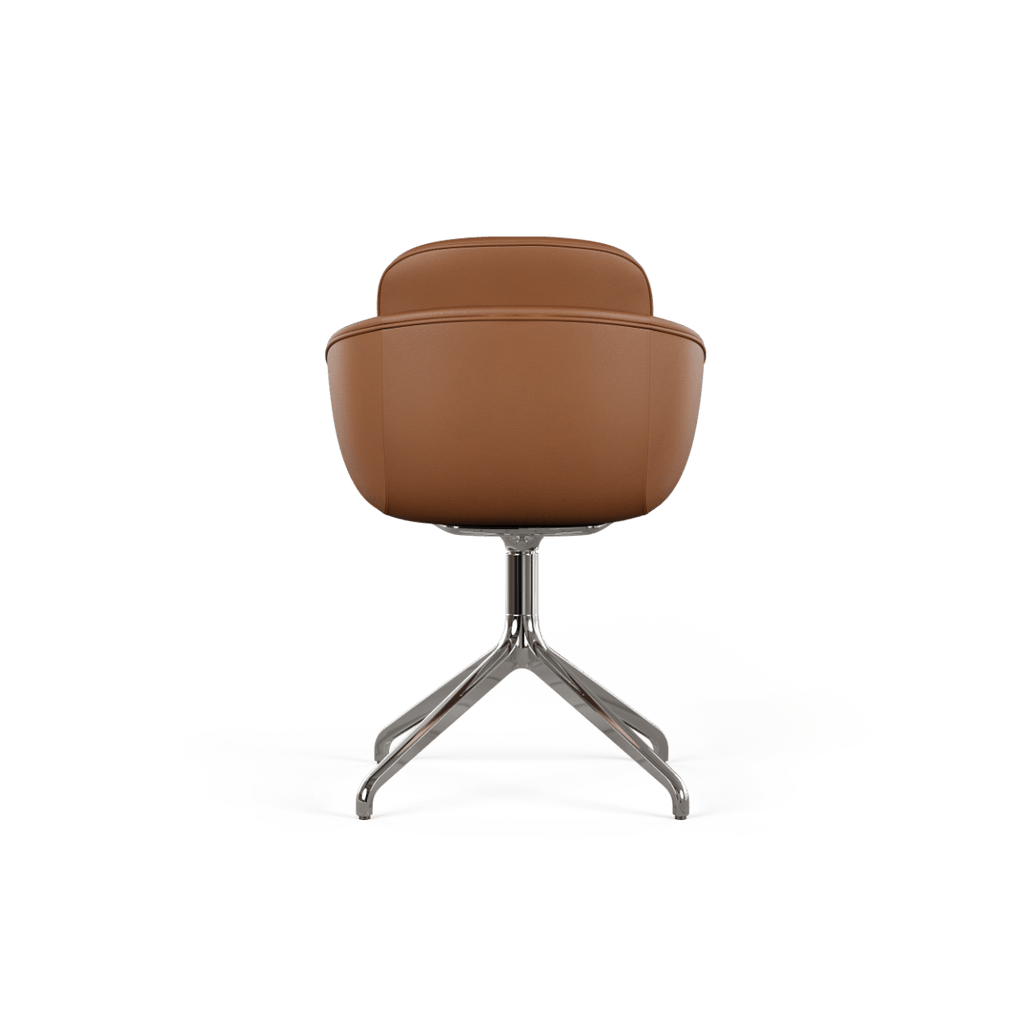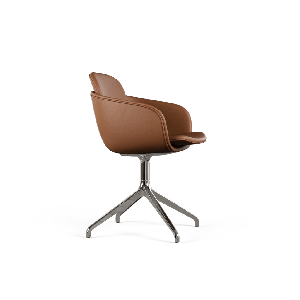 Chair no. One. er en spisebordsstol i et kompromisløst design fremstillet i nøje udvalgte materialer med fokus på bæredygtighed og kvalitet. Stellet er fremstillet i poleret genanvendeligt aluminium, hvortil sædet er produceret af genanvendt plast og polstret i læder fra SPOOR af højeste kvalitet.