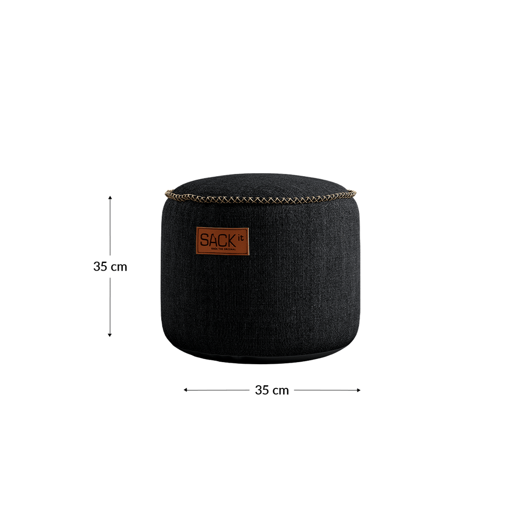 Vi anbefaler, at du stiller den under halvtag ved kraftig regn, da vand kan trænge ind i ved syningerne – og vi ved alle at en våd puf ikke er lige så lækker at sidde på.
