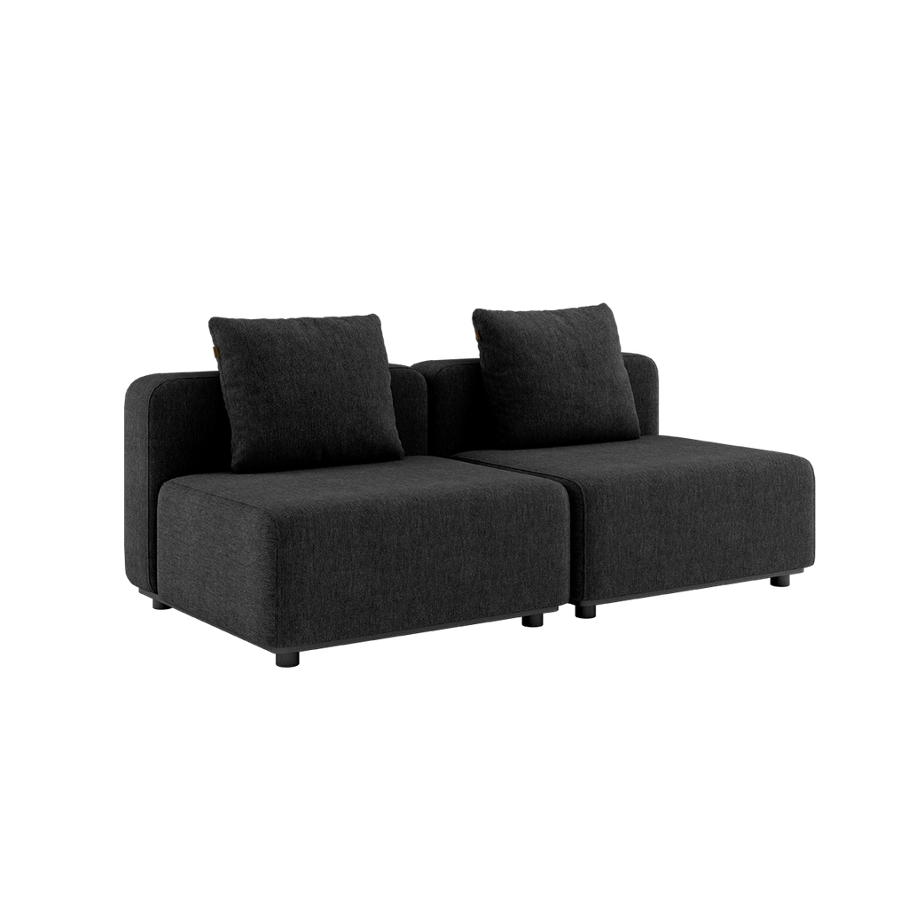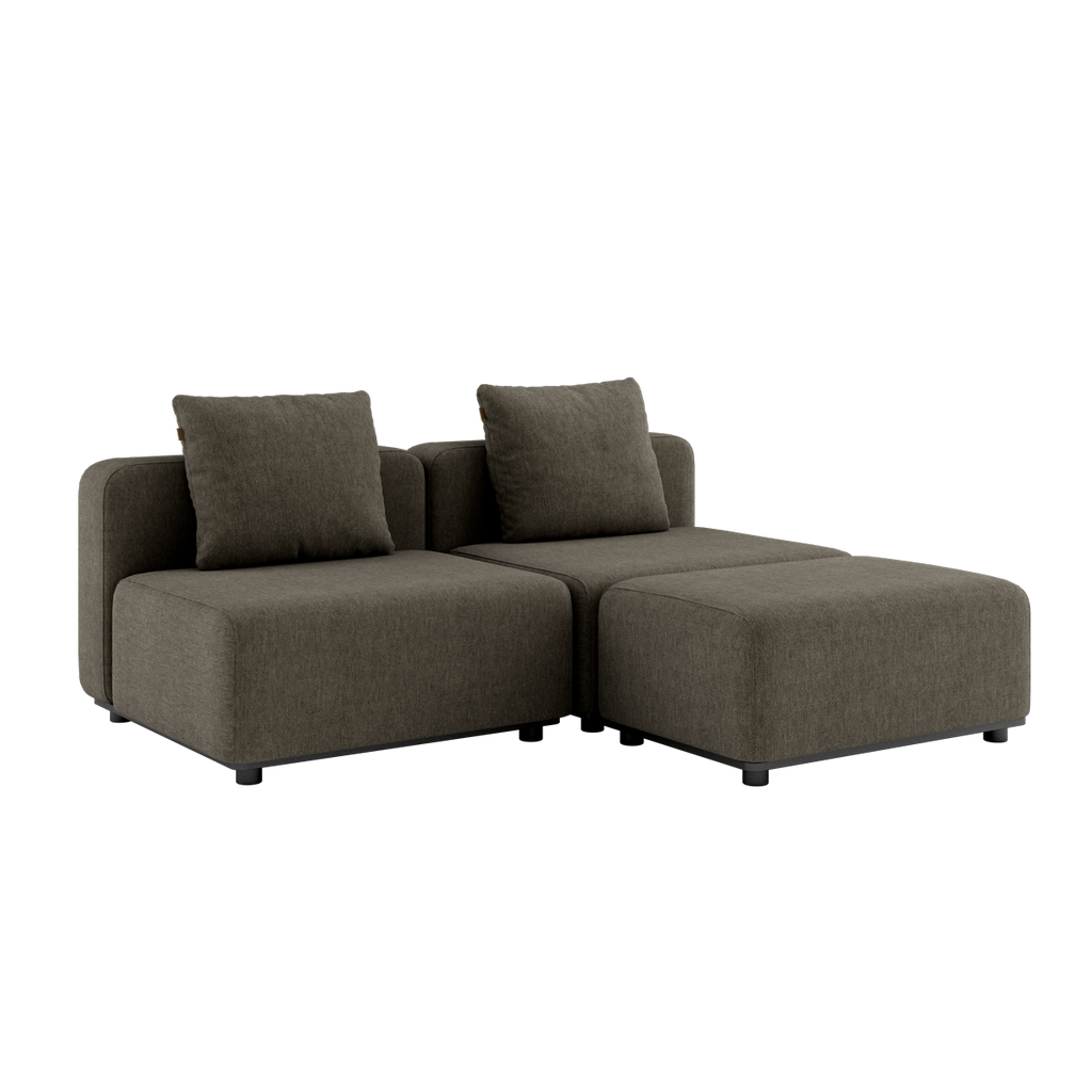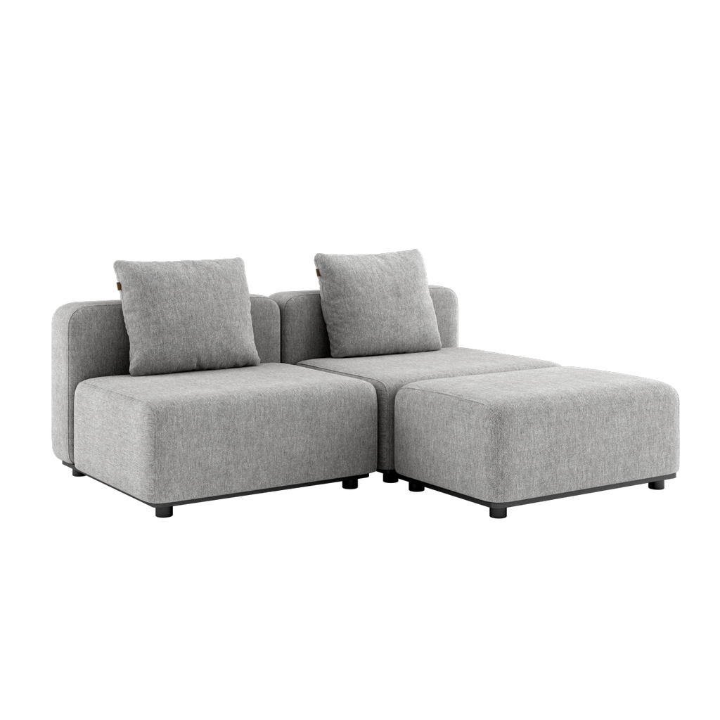 De lette moduler gør det nemt at ændre opstillingen, når behovet ændrer sig, uden at gå på kompromis med stabilitet og komfort. Konstruktionen er opbygget omkring en pulverlakeret aluminiumsramme og slidstærke materialer, der er skabt til at stå ude hele året. Tekstilet er vand- og smudsafvisende, hurtigtørrende og UV-resistent, så sofaen bevarer både form, funktion og farve over tid.