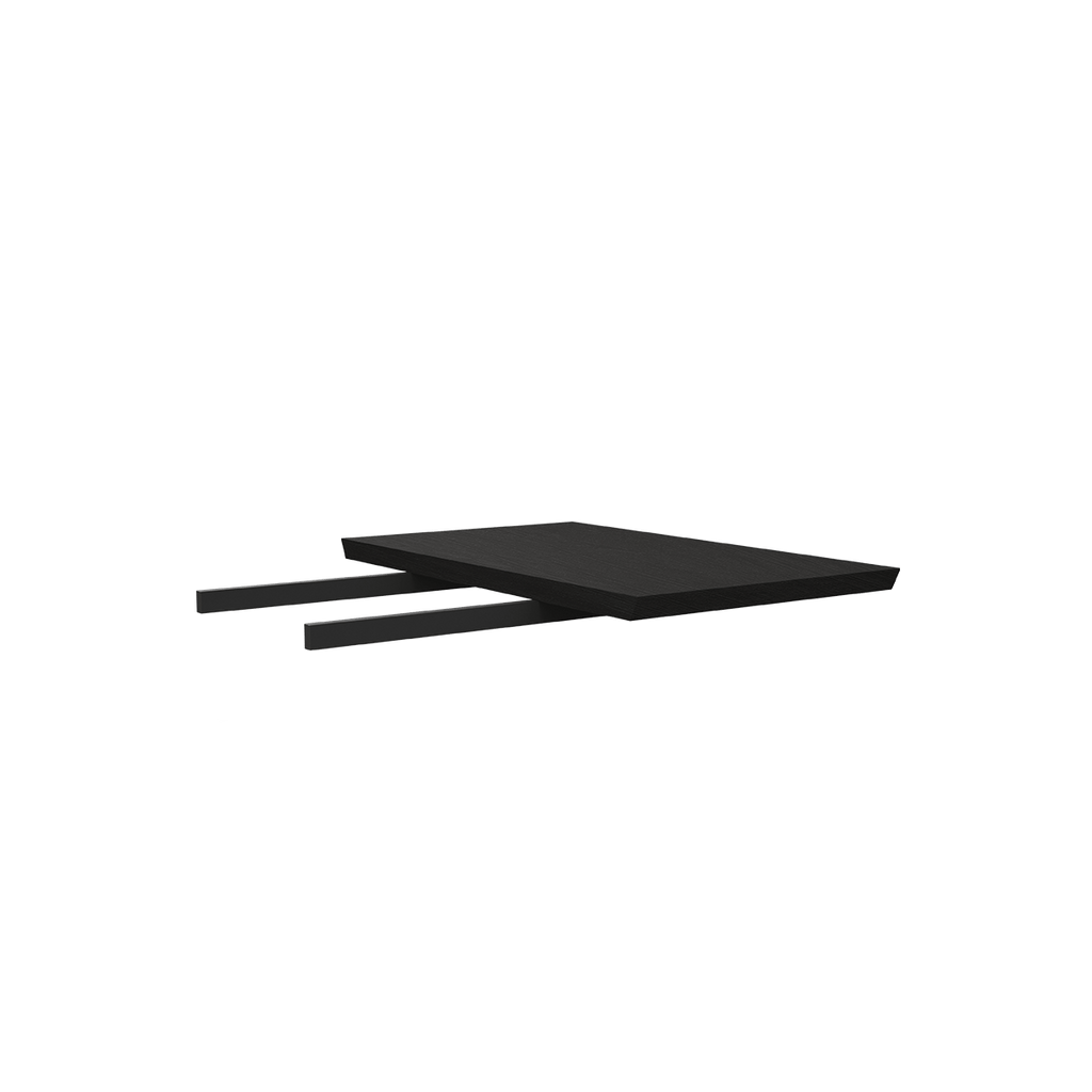 Forlæng dit Edge Dining Table med en tillægsplade, som er er let at montere med fingerskruer og deler samme materiale og konstruktion som bordet. Tillægspladen er designet i sortbejdset egetræsfiner med træets åre løbende på tværs, hvilket skaber en bevidst og flot kontrast når de monteres på bordet.