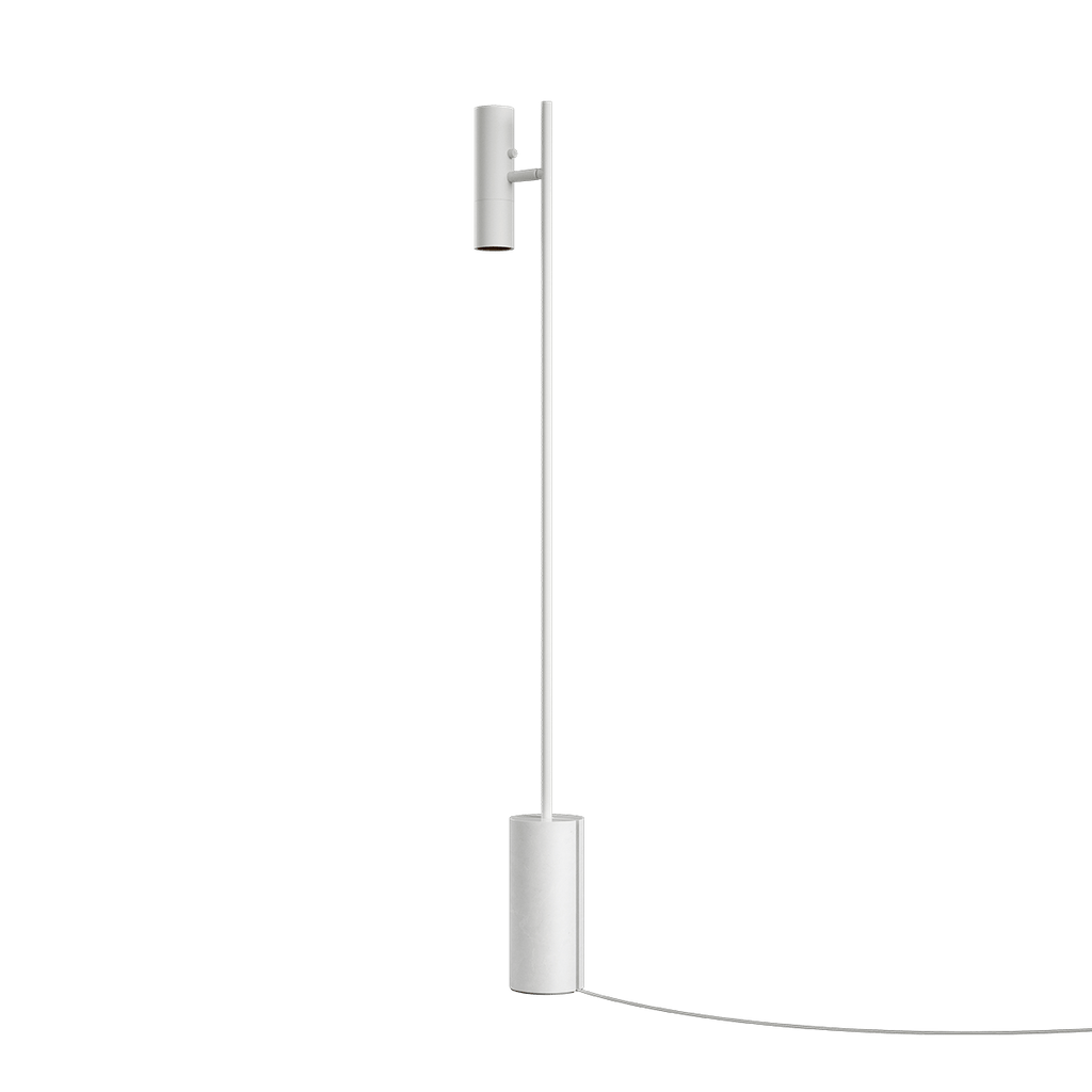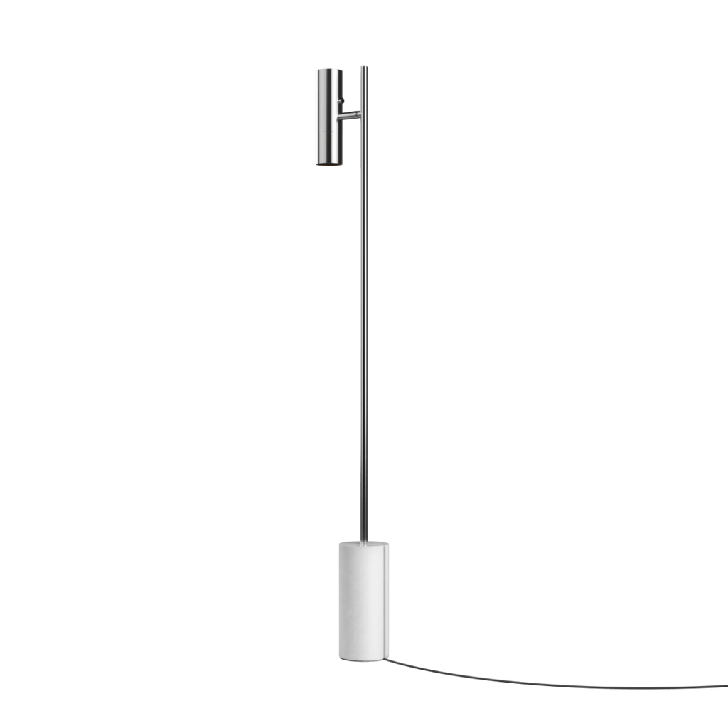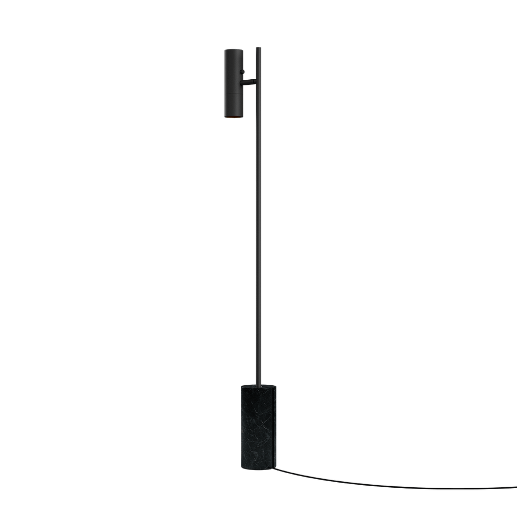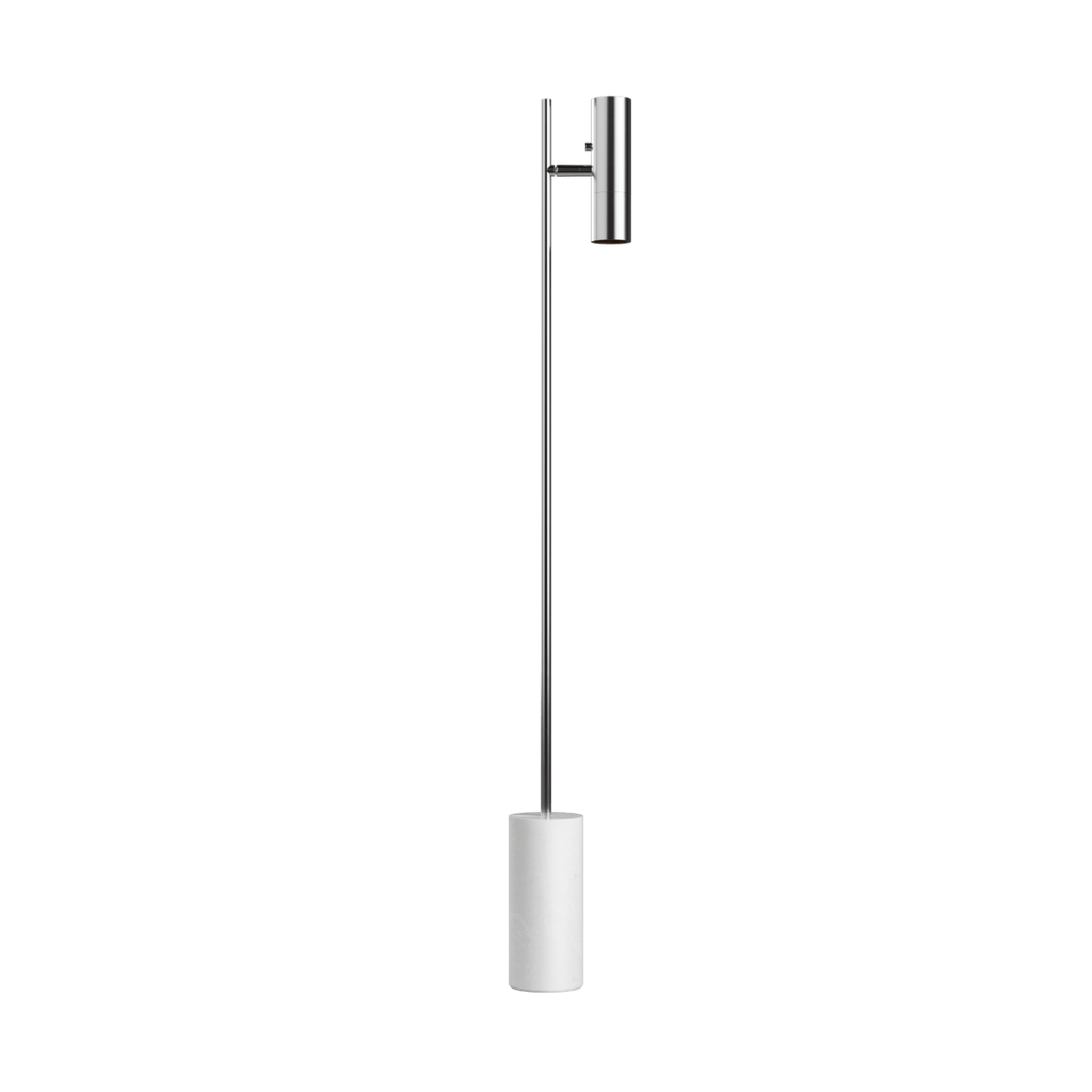 Expo Floor er en gulvlampe i kompromisløst design, hvor form og funktion går op i en højere enhed. Kombinationen mellem lampens massive aluminium, den matte overflade og den unikke marmorfod skaber et enkelt og eksklusivt udtryk.