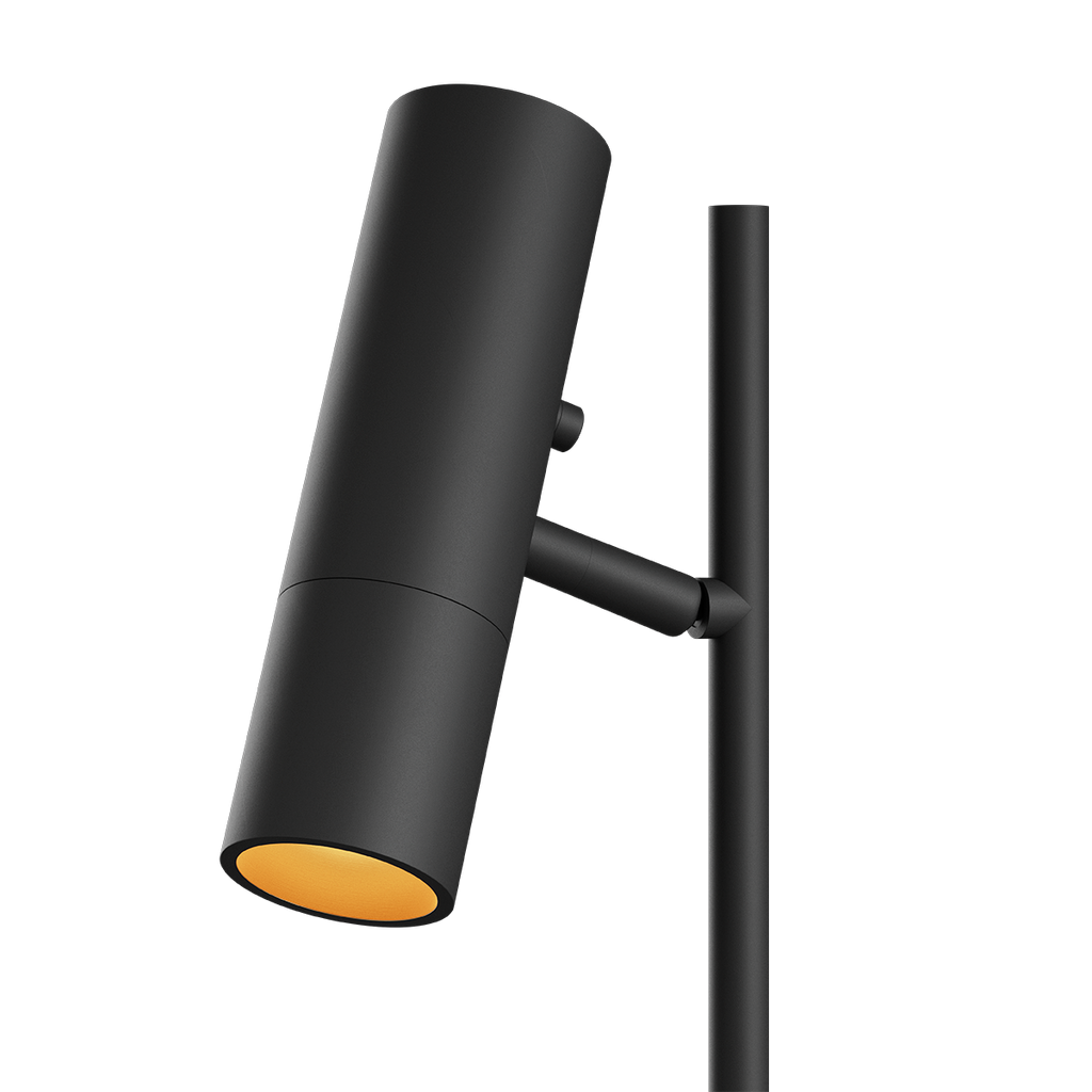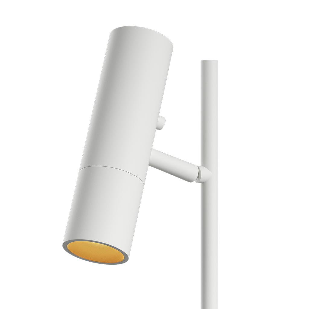 Lyskilden er trukket diskret tilbage i skærmen for at skabe et blændfrit og behageligt lys. Den gyldne inderside reflekterer lyset og tilfører en varm tone, der bygger stemning uden at dominere rummet. Det integrerede kugleled gør det muligt at dreje lampehovedet 360 grader og vippe det op og ned, så lyset kan rettes præcist. On/off touch-knappen er integreret i designet og gør betjeningen enkel og intuitiv.