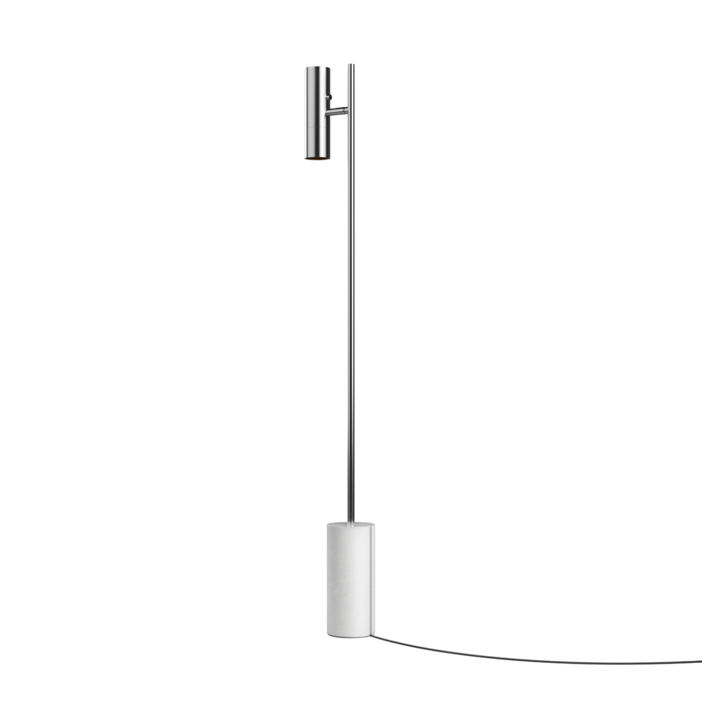 Expo Floor er en gulvlampe med et klart og afbalanceret formsprog, hvor proportioner og materialer arbejder sammen som en helhed. Den slanke aluminiumsprofil står i kontrast til den massive marmorfod, som tilfører naturlig tyngde og stabilitet. Den matte overflade understreger lampens rolige udtryk og gør den velegnet i både private rum og professionelle miljøer.