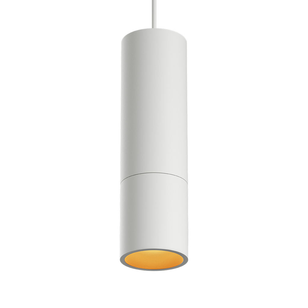 Lyskilden er trukket tilbage i skærmen for at skabe et kontrolleret og blændfrit lys. Den gyldne inderside reflekterer lyset nedad og tilfører varme uden at sprede sig unødigt i rummet. Det enkle ophæng understøtter lampens rene proportioner og gør den velegnet i både bolig- og projektmiljøer, hvor gentagelse og præcision er centrale elementer.
