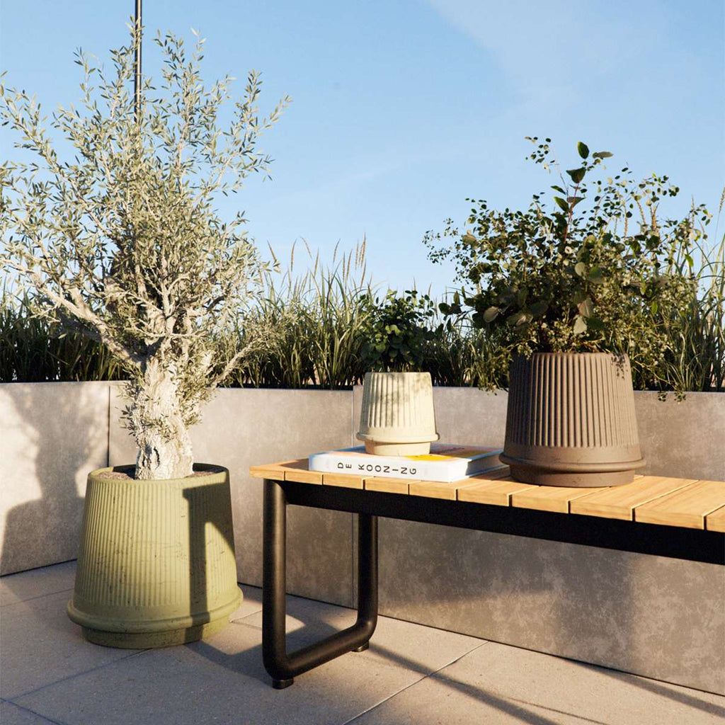 Gaia 16 er en frostsikker udendørskrukke med en mat, riflet overflade. Inspirationen til Gaias form er hentet i æstetikken fra det gamle Grækenland, hvor også navnet stammer fra – Gaia er nemlig den græske gudinde for Jorden og jordens frugtbarhed.