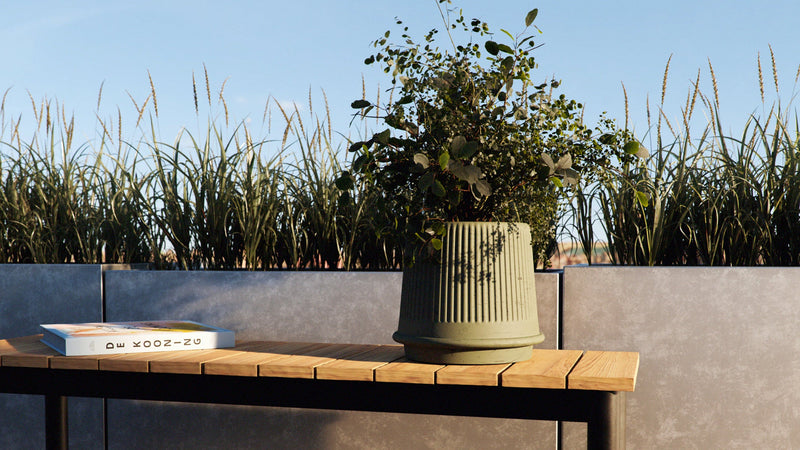 Udendørs havekrukke i keramik med klassisk, riflet design - Ø26