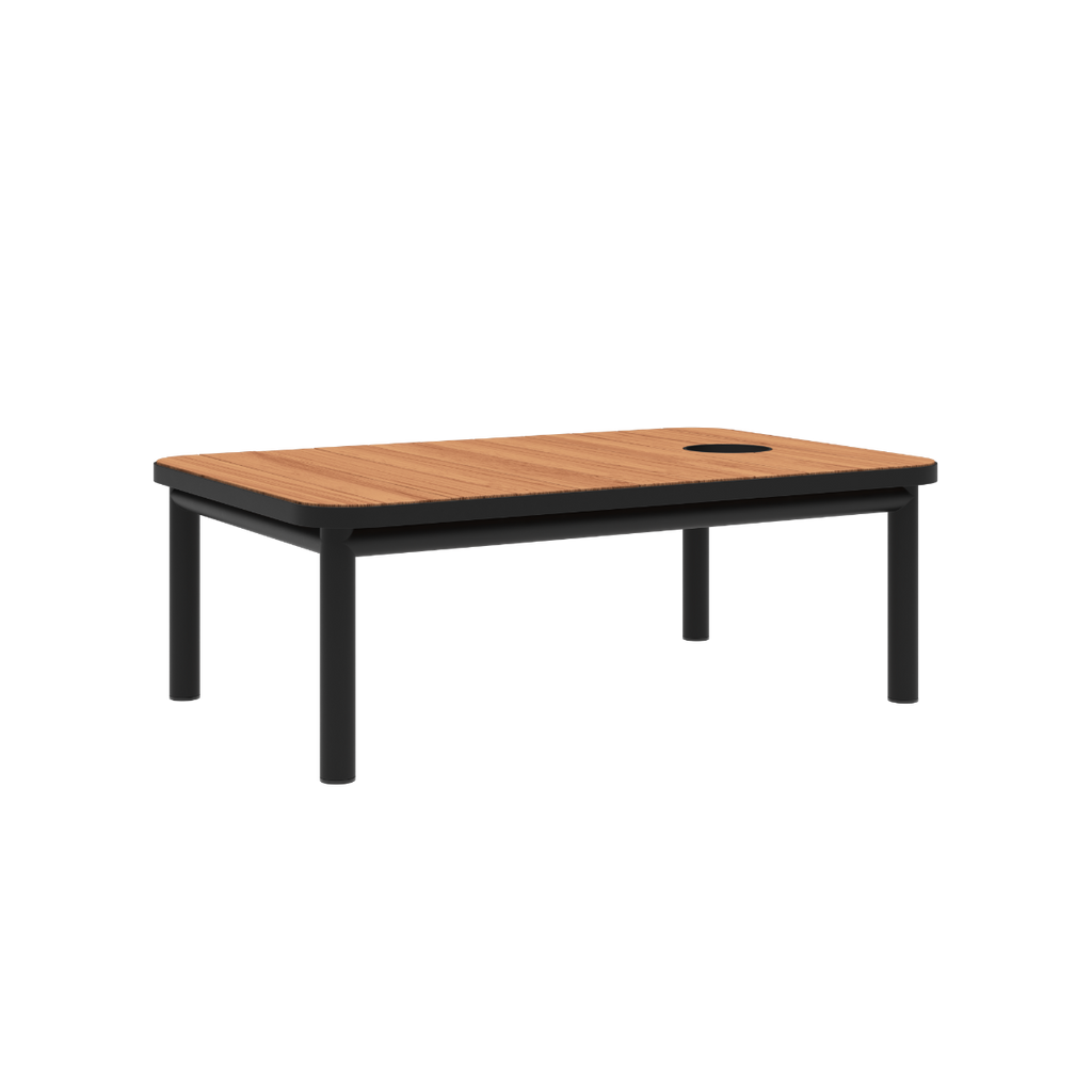 Kirra Coffee Table er et flot og funktionelt udendørs sofabord fremstillet i pulverlakeret aluminium med en bordplade i FSC®-certificeret teaktræ (FSC® C190311). Det er ideelt som supplement til møblerne i vores udendørs sofaer, men fungerer også som en central del af hyggelige udendørs stunder.