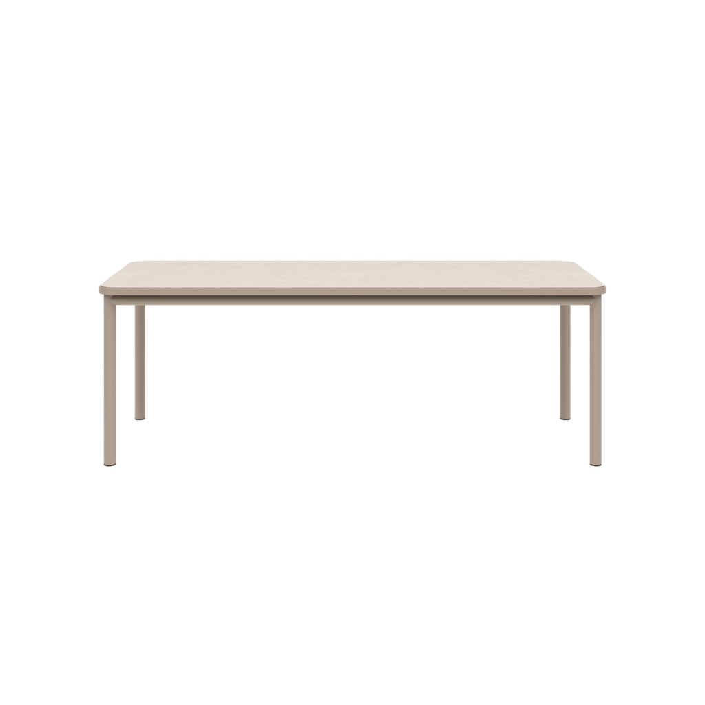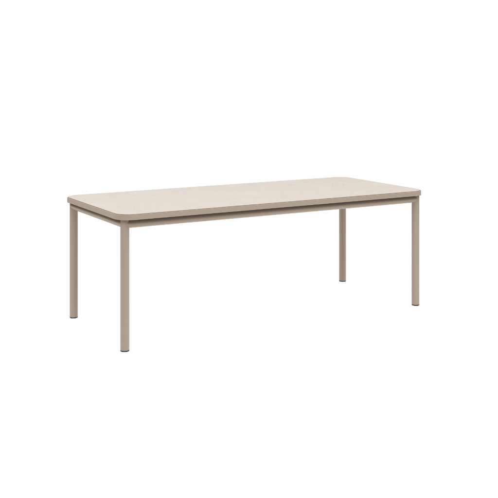 Kirra Dining Table er et udendørs spisebord i pulverlakeret aluminium og en keramisk bordplade. Aluminium gør det let og kan ikke ruste, mens den keramiske bordplade tilføjer varme og et naturligt touch.