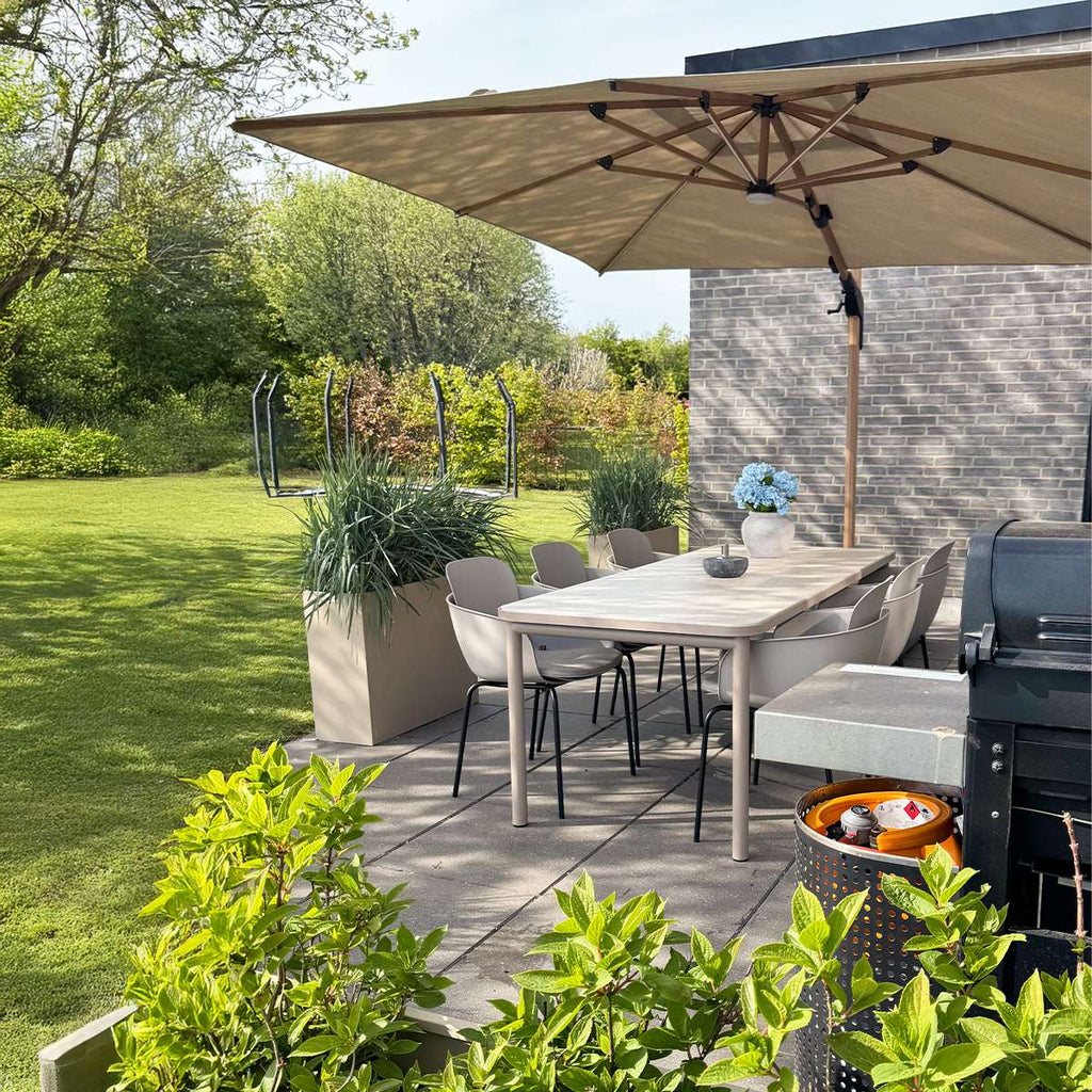 Elegant og vejrbestandigt udendørs spisebord med keramisk bordplade