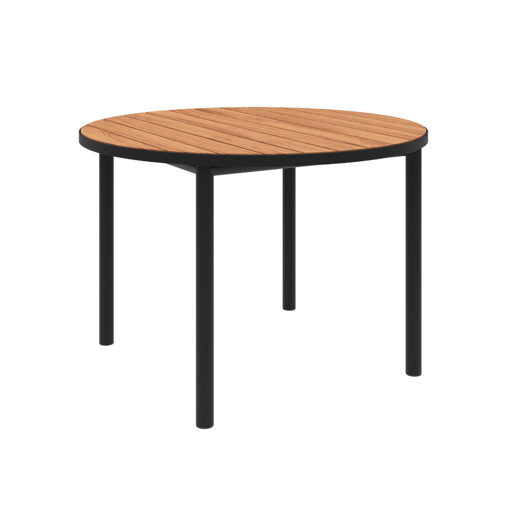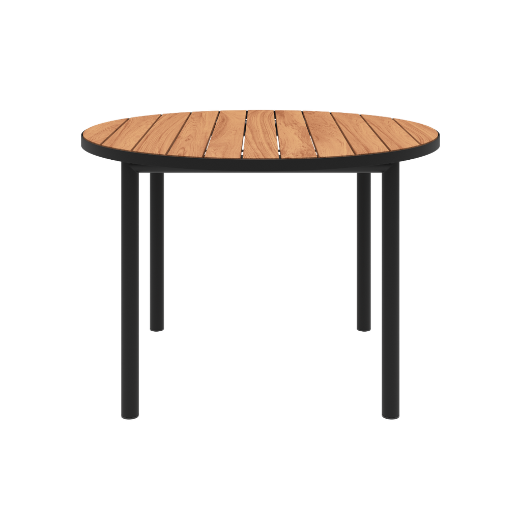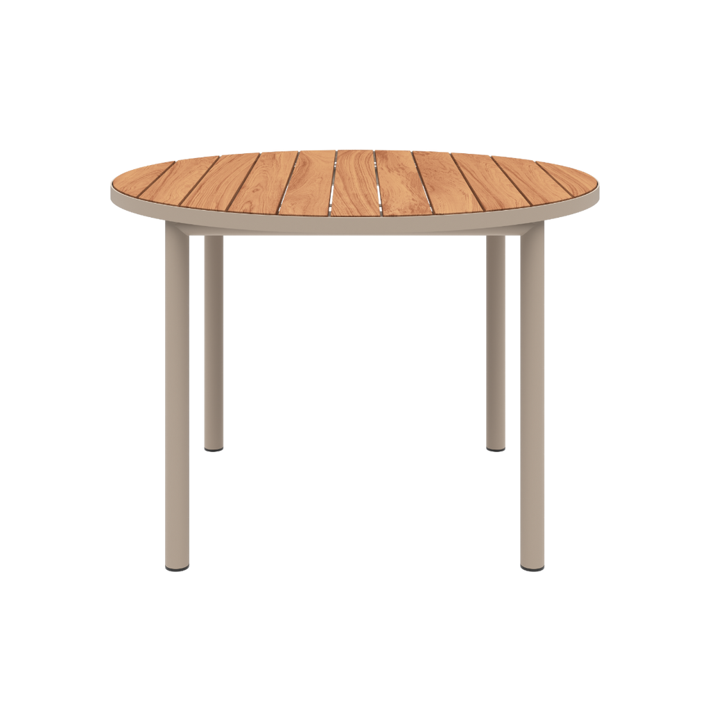 Rundt udendørs spisebord til 4 personer i teaktræ og aluminium