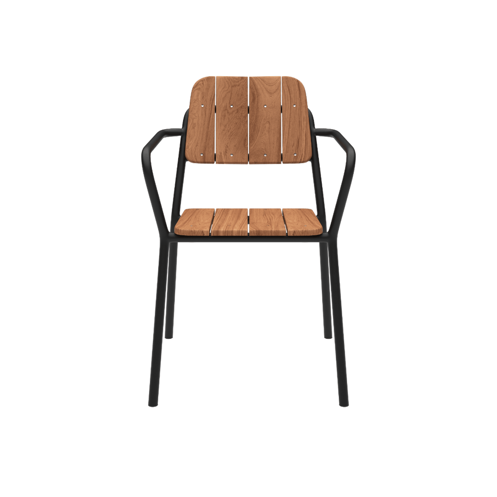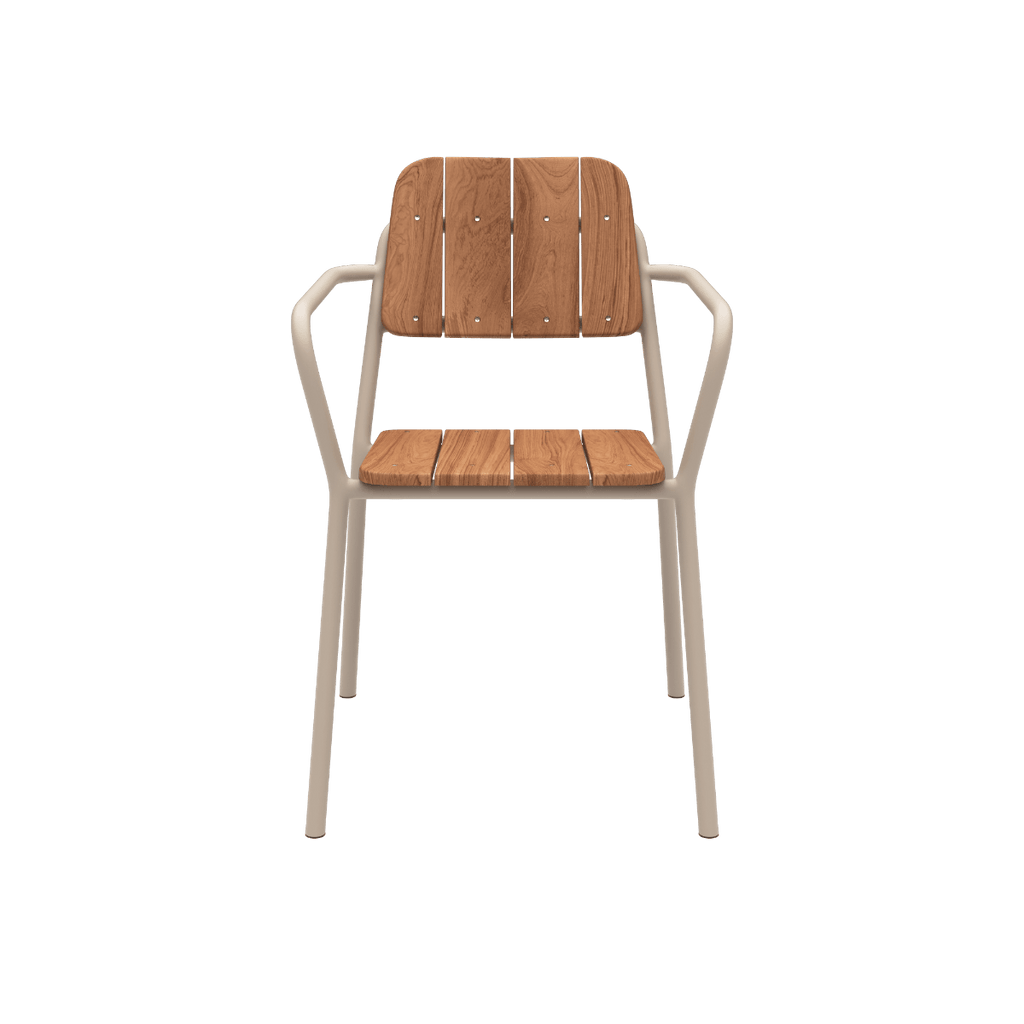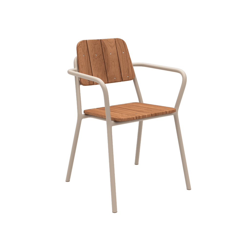 Stabelbar havestol i teaktræ og pulverlakeret aluminium