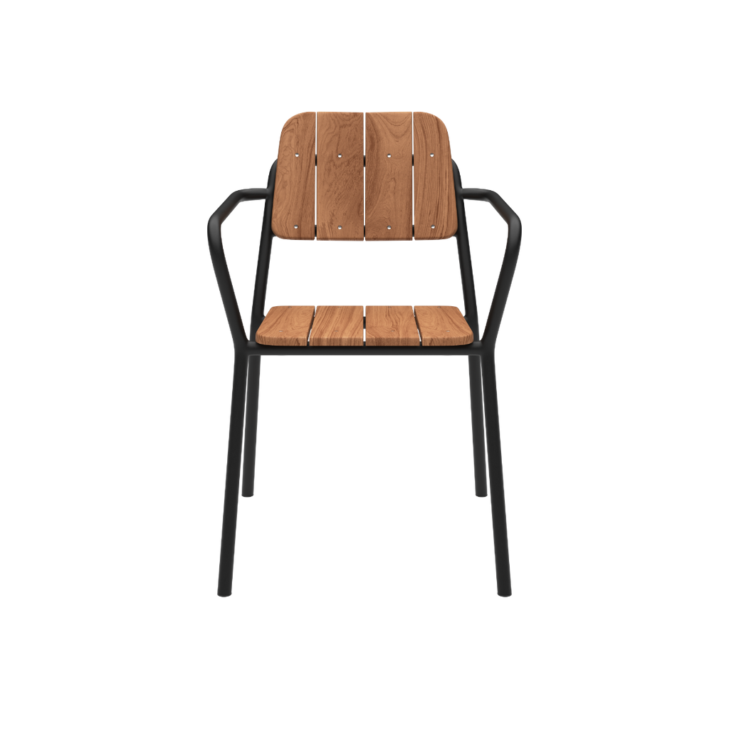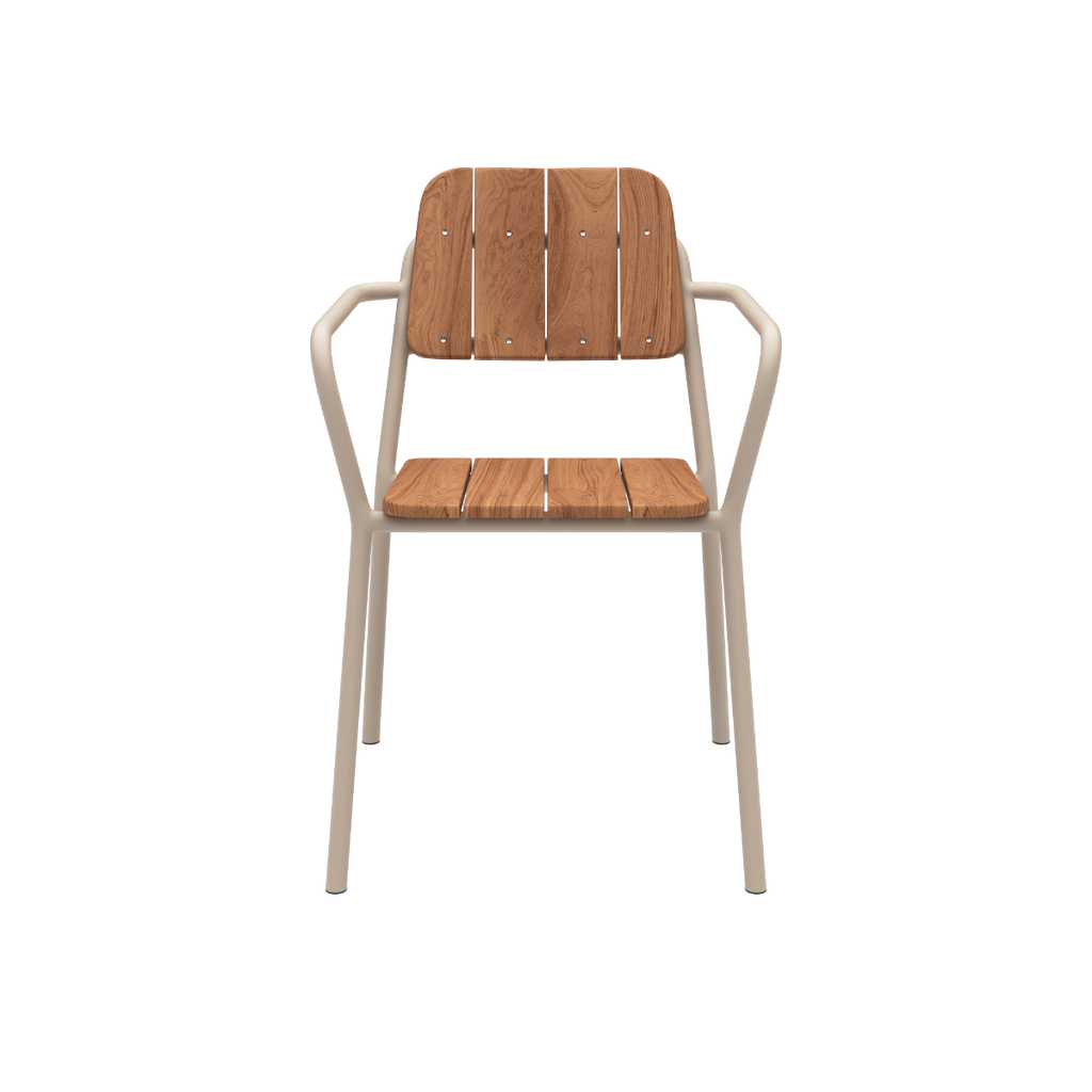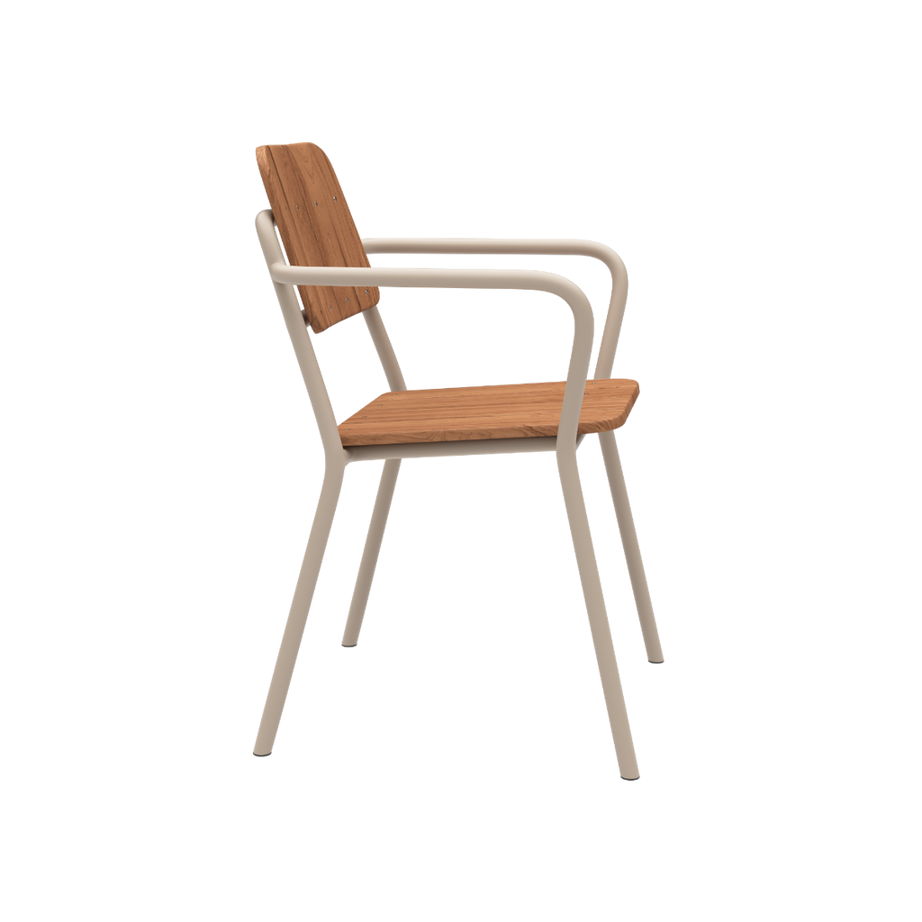 Stabelbar havestol i teaktræ og pulverlakeret aluminium