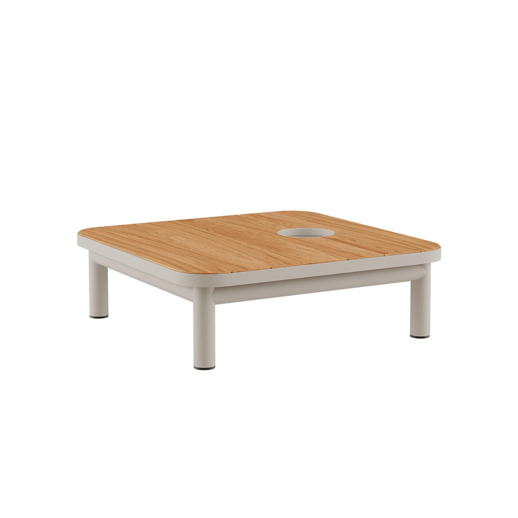 Kirra sofabordet er et udendørs sofabord, fremstillet af pulverlakeret aluminium med en elegant teaktræbordplade. Som en del af Kirra Lounge-serien er dette sofabord designet til at passe perfekt sammen med Kirra Lounge Sofa og Chair. Med sin holdbare konstruktion og æstetisk appel vil Kirra sofabordet være en smuk og praktisk tilføjelse til enhver udendørs oase.