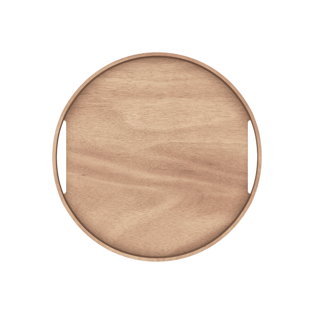 Nordic Serving Tray er en serveringsbakke i træ i enkelt, stilrent design. Med en diameter på 50 cm, står bakken stabilt og er nem at transportere rundt hjemme – når du serverer for gæster, til morgenmad på sengen eller når du vil nøjes med kun at gå én gang. Med sin store overflade og de næsten skjulte håndtag, der elegant indgår i designet, er der masser af plads til alle dine ting på bakken. Bakken har desuden en høj kant på 5 cm, som sørger for, tingene bliver, hvor de er.