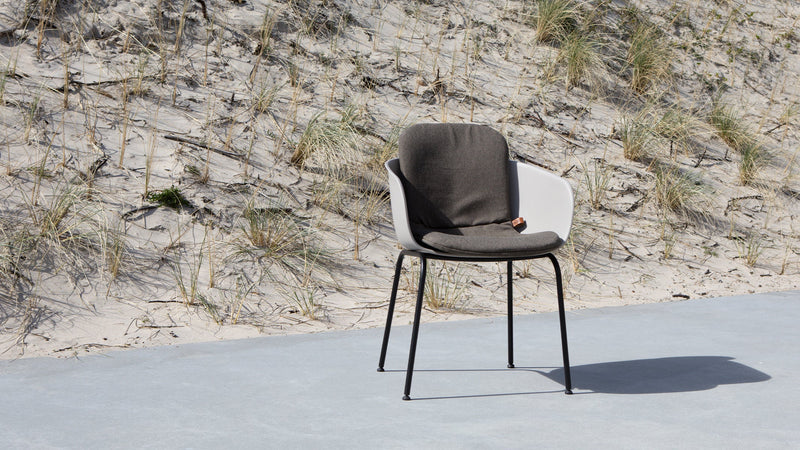 Nyd livet udenfor med Patio Chair no. One. En udendørsstol, i et kompromisløst design, med fokus på komfort og æstetik. Skallen er fremstillet af genanvendt plast og stellet i pulverlakeret stål. Et design, som omfavner dig med fantastisk komfort og støtte.