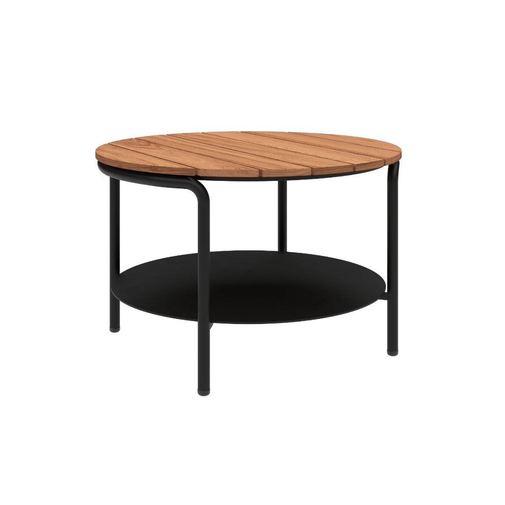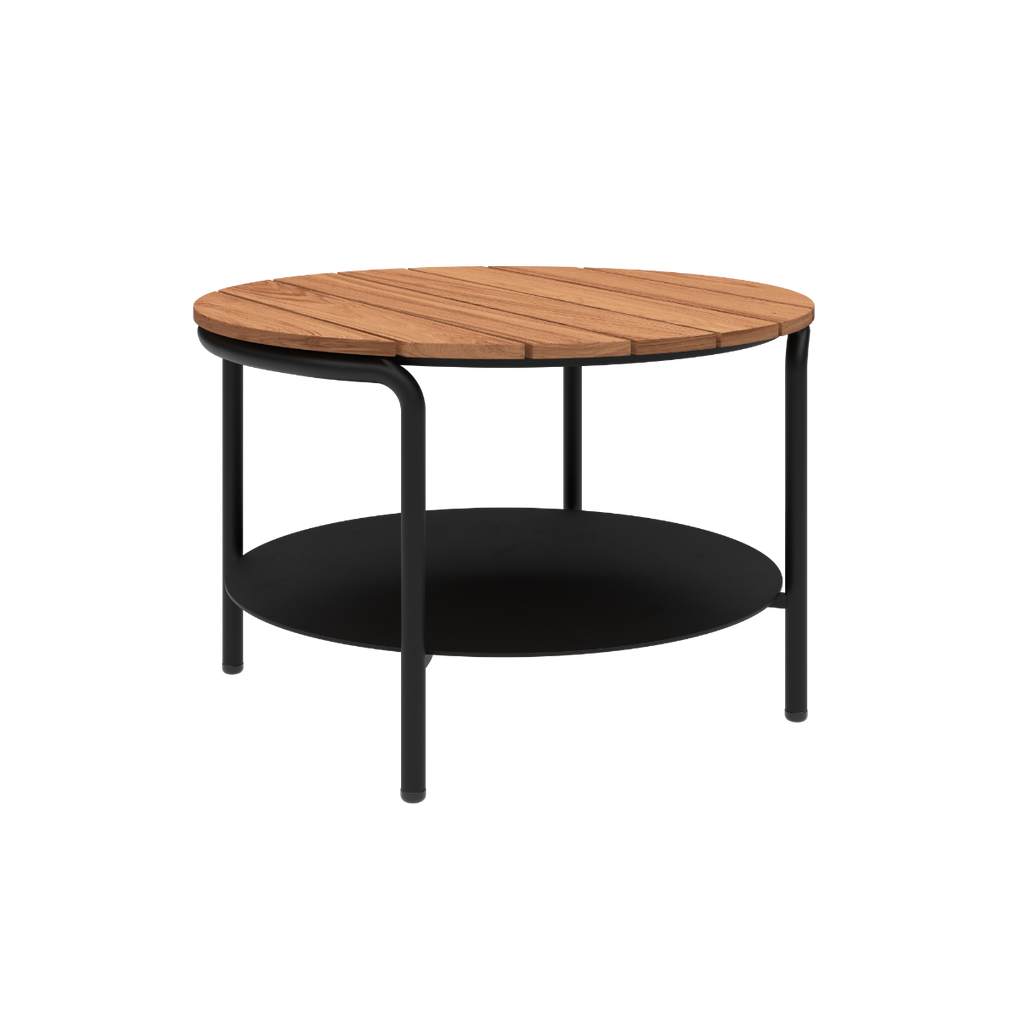 Udendørs sofabord fremstillet i pulverlakeret aluminium og teaktræ