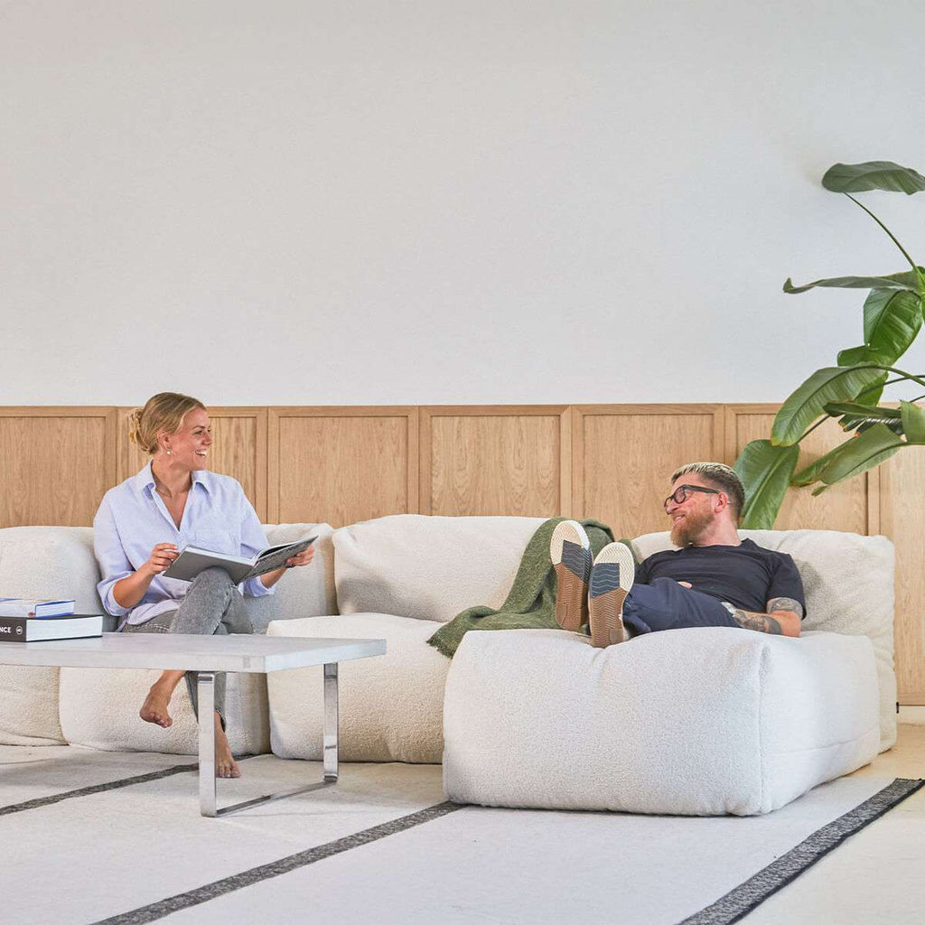 Soft Sofa Indoor er skabt til hjemmet og bygger på det samme bløde DNA som vores bestseller Soft Sofa Outdoor. En sofa uden stel, hvor komfort, fleksibilitet og form arbejder frit sammen. En ægte boneless couch, der former sig efter kroppen og hverdagen, frem for omvendt.