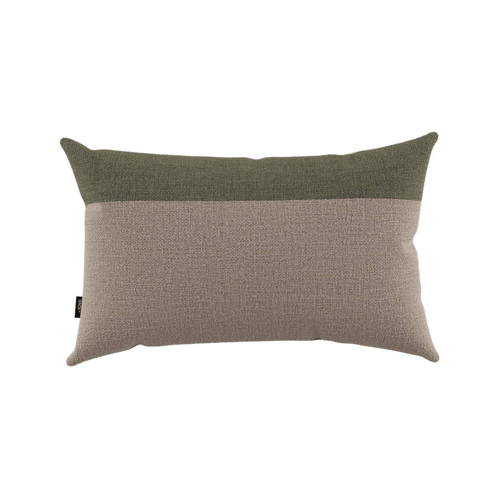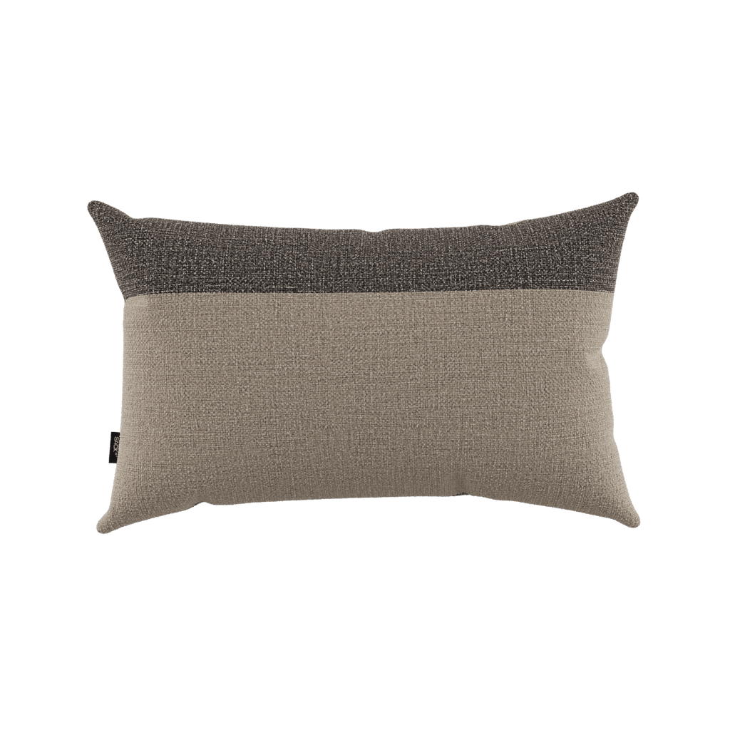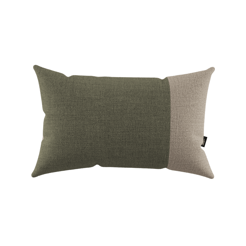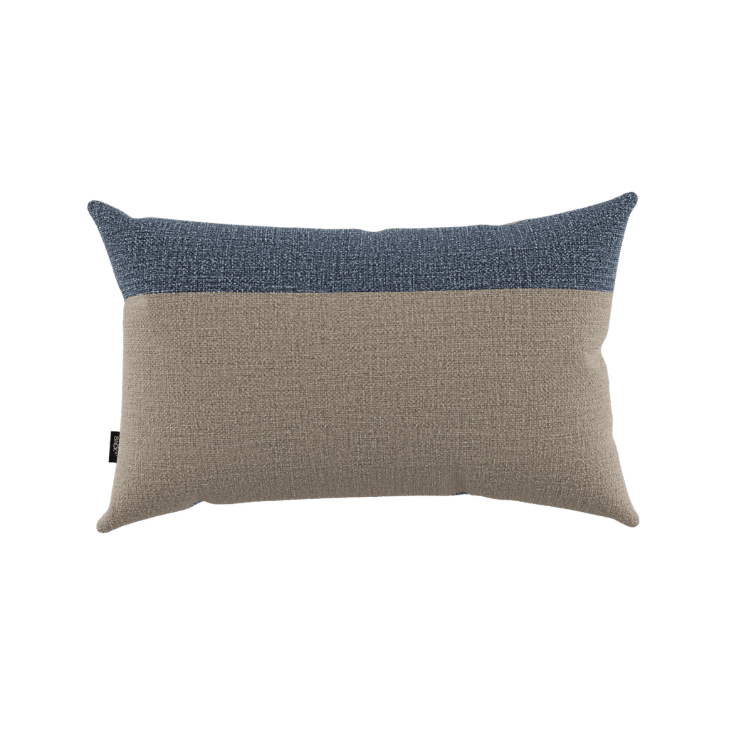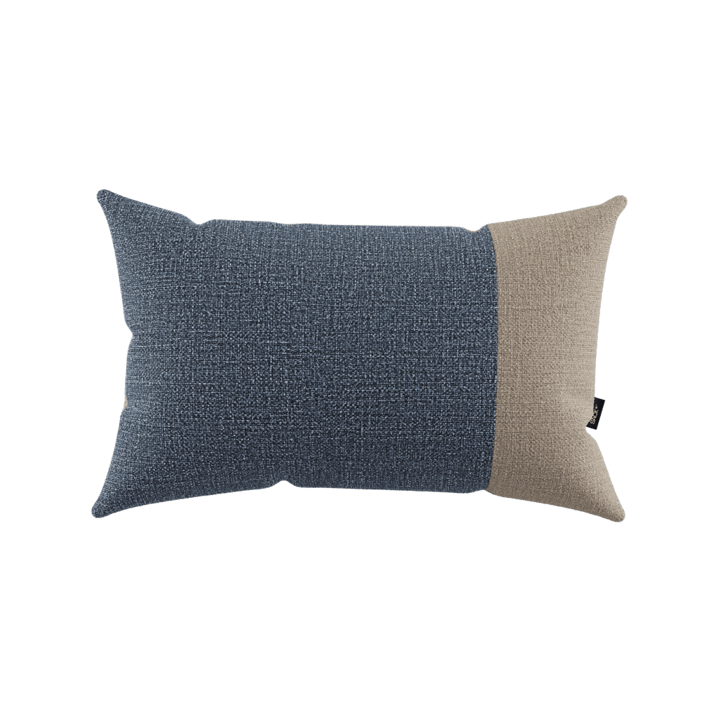Pudens farveblokke skaber visuel dybde og trækker linjer på tværs af møbler og uderum.Stoffet er lavet til udendørs brug og kan tåle både sol og let fugt. Og når puden trænger til en opfriskning, kan betrækket tages af og vaskes.