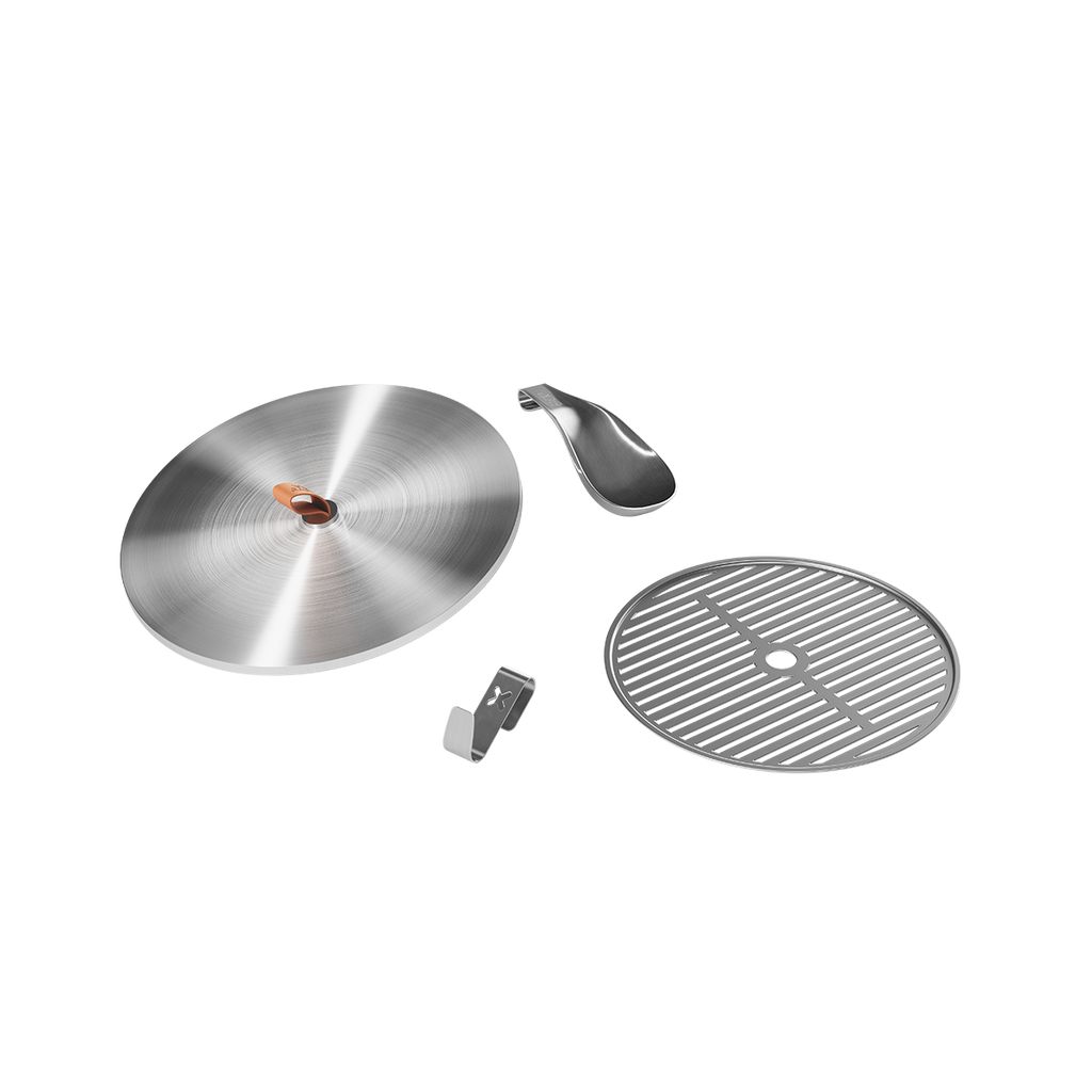 I accessory-pakken medfølger låg, krog, ske og rist, som forlænger køletiden markant og gør det lettere at håndtere indholdet af is- og vinkøleren.